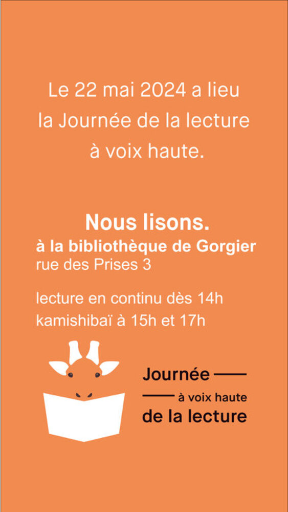 Cette année, nous vous proposons la lecture avec un kamishibai, ce petit théâtre où l’on fait défiler les images au fur et à mesure de l’histoire. Deux séances de kamishibai auront lieu, à 15h et 17h, pendant lesquelles une bibliothécaire fera prendre vie à une histoire différente à chaque fois. De plus, l’association PIP (Prévention de l'illettrisme dès le préscolaire) proposera des lectures individuelles de 14h à 17h. Par beau temps, ces lectures prendront place à l’extérieur de la bibliothèque.